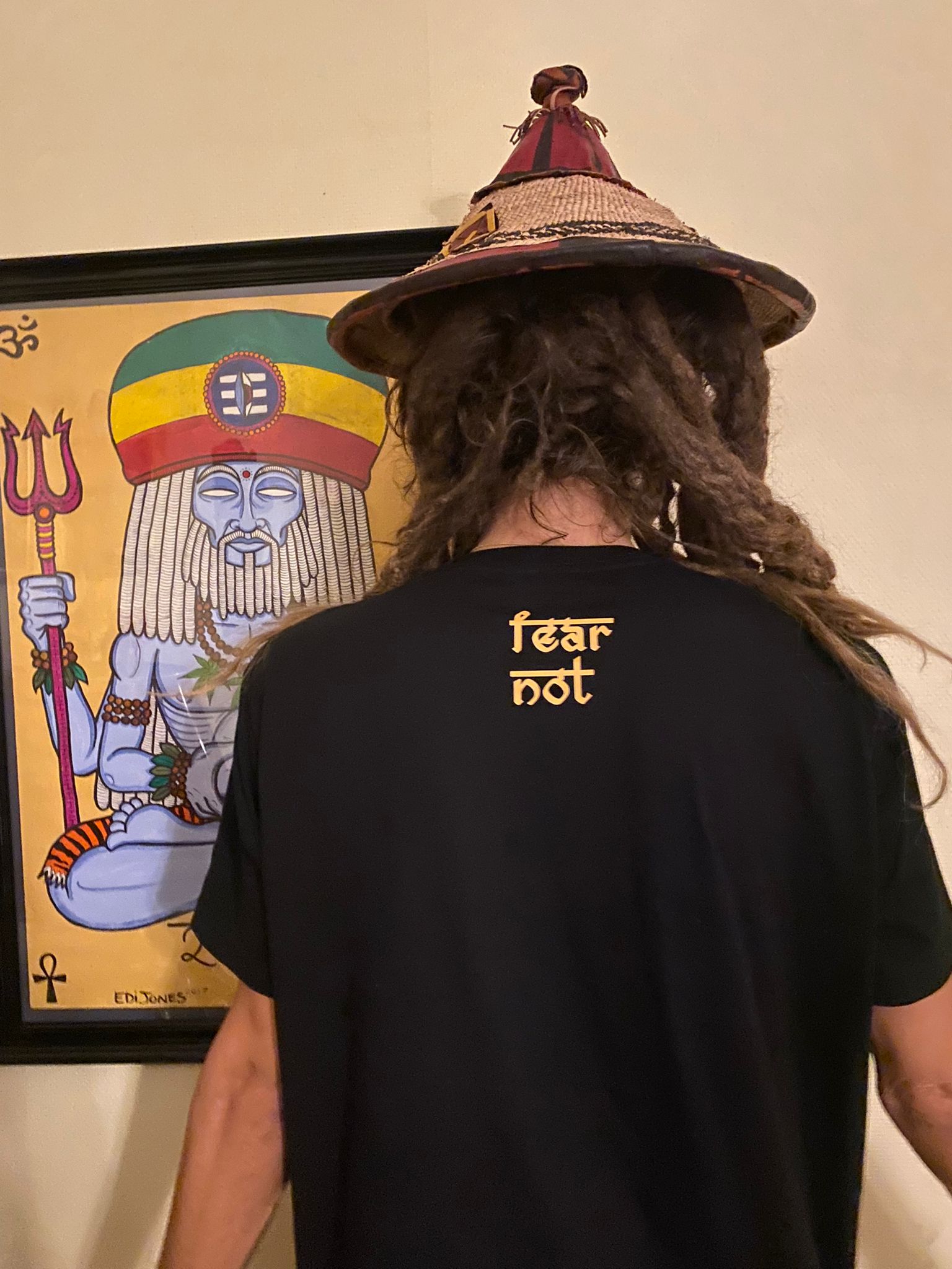 - Large Back Print with Fear Not on the breast pocket on the front.